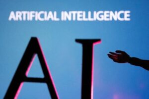 FILE PHOTO: AI (Artificial Intelligence) letters and robot hand miniature in this illustration taken, June 23, 2023. REUTERS/Dado Ruvic/Illustration/File Photo