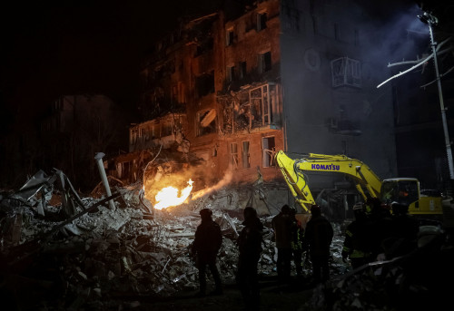 KYIV, Jan 2 (Reuters) – Russian missiles struck a multi-storey apartment building in Kharkiv in northeastern Ukraine on Friday, leaving the building in ruins and killing at least two people and injuring about 25 more, officials said.
