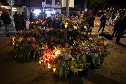Dozens of people left flowers or lit candles on a makeshift altar at the top of the road leading to the bar which police had cordoned off. Some cried, others quietly hugged one another.